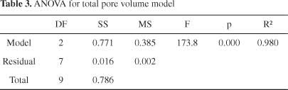 這個(gè)方程適用于微孔體積預(yù)測(cè),用包含文獻(xiàn)中的數(shù)據(jù)和由我們獲得的數(shù)據(jù)的測(cè)試樣品進(jìn)行評(píng)估。共測(cè)試了36個(gè)樣本。圖形比較(圖4)表明該模型具有良好的預(yù)測(cè)能力。該試驗(yàn)樣品組的平均絕對(duì)誤差為0.05cm 3 g -1,平均相對(duì)誤差為16.4%。表2給出了模型的統(tǒng)計(jì)參數(shù)。