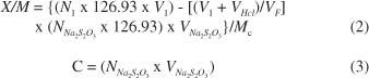 其中N I 是碘溶液的當(dāng)量濃度,V I是碘溶液的加入量,V HCl是5%HCl的加入體積,V F 是滴定中使用的濾液體積,N Na 2 S 2O 3 是鈉硫代硫酸鈉溶液正常,V Na 2 S 2 O 3 是硫代硫酸鈉溶液的消耗體積,M C 是活性炭的質(zhì)量。