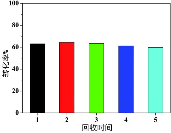 進(jìn)行回收試驗(yàn)以研究活性炭催化劑的異質(zhì)性和穩(wěn)定性。第一次催化反應(yīng)完成后,過濾回收活性炭載鉑催化劑(硫酸活化),用蒸餾水洗滌,55℃真空干燥12小時(shí),重新用于第二次催化反應(yīng)。在另外三個(gè)運(yùn)行中實(shí)施了相同的操作。同時(shí),在第一次運(yùn)行后,通過檢測回收的活性炭催化劑和濾液中的鉑量。圖3展示了回收試驗(yàn)的結(jié)果。觀察到甲基環(huán)己烷的轉(zhuǎn)化率在59.8-64.4%范圍內(nèi)有小幅波動(dòng),表明活性炭催化劑的活性在重復(fù)使用4次后幾乎沒有下降,表明活性炭催化劑具有良好的穩(wěn)定性。第一次運(yùn)行后,反應(yīng)中的鉑浸出量為0.33ppm。當(dāng)鉑催化劑從反應(yīng)體系中過濾出來時(shí),在濾液中很少觀察到催化反應(yīng),這證明了活性炭載體上的鉑作為非均相活性位點(diǎn)。