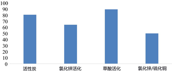 原材料用蒸餾水洗滌數(shù)次,然后干燥24小時(shí),然后將原料通過電動研磨機(jī)獲得的粉末。將100g樣品與1L草酸(20%w/w)一起回流180分鐘,然后讓混合物在室溫下冷卻。將出售的部分通過過濾分離,以除去任何過量的草酸,將該固體與250mL/2M鹽酸一起加熱90分鐘。然后,對新混合物進(jìn)行多次過濾并用蒸餾水沖洗以得到干凈的固體,以除去樣品中存在的任何水分,將固體在130℃的烘箱中放置30小時(shí)。最后,為保證樣品的均勻性,將干燥的固體研磨過篩,得到草酸活化的活性炭粉末。對含有100g原料和1L20%w/w氯化鋅酸性溶液的混合物以及100g原料和20%w/w氯化鋅酸性溶液和50g銅的混合物重復(fù)相同的程序。得到的氯化鋅活化的活性炭和氯化鋅/硫化銅活化的活性炭?傆(jì)三種活化方式制成的活性炭吸附劑。