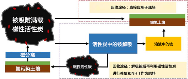 圖2:土壤修復(fù)后磁性活性炭和銨鹽的兩種循環(huán)利用途徑。