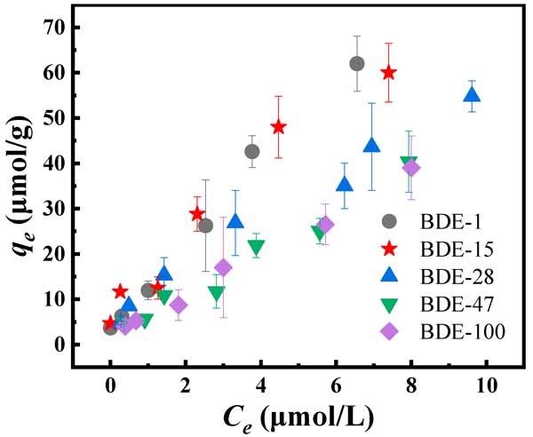 圖2:活性炭對不同濃度PBDEs的吸附。