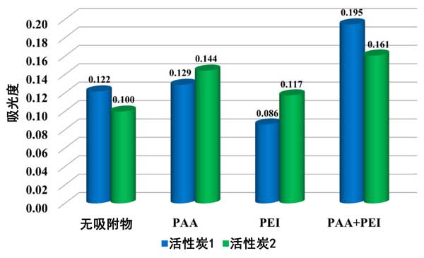 活性炭用于離子聚合物吸附,在測試活性炭的特點(diǎn)是對離子聚合物具有高吸附能力。聚丙烯酸的吸附量達(dá)到約190mg/g,聚乙烯亞胺的吸附量達(dá)到約80mg/g。由于在pH3的測試系統(tǒng)中呈現(xiàn)完全不同構(gòu)象的聚合物鏈的競爭,聚合物從二元溶液中的吸附顯著下降。離子聚合物對活性炭懸浮液的穩(wěn)定性有很大影響。它們的存在也會(huì)影響固體顆粒形成的表面電荷密度、zeta電位和聚集體尺寸;钚蕴1表面上顯著發(fā)達(dá)的PEI鏈的最垂直吸附通過橋聯(lián)絮凝導(dǎo)致懸浮液不穩(wěn)定。另一方面,在含有活性炭2材料和離子聚合物的體系中發(fā)生了空間和電空間穩(wěn)定。由于耗盡力產(chǎn)生了額外的穩(wěn)定機(jī)制,雙星系統(tǒng)是最穩(wěn)定的。聚乙烯亞胺和聚丙烯酸大分子之間的競爭導(dǎo)致一些聚合物鏈保留在溶液中,這顯著降低了絮凝趨勢。