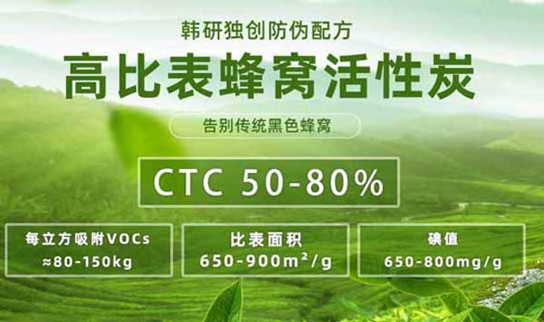 比表面積是指單位質(zhì)量活性炭所具有的表面積。它是衡量活性炭吸附性能的重要指標(biāo)之一。比表面積越大,活性炭的吸附能力越強(qiáng),因?yàn)樗軌蛱峁└嗟谋砻娣e來吸附有害氣體或異味分子。一般來說,韓研的活性炭的比表面積可以達(dá)到900㎡/g以上,而普通活性炭的比表面積可能在100~600㎡/g之間。此外,除了比表面積之外,還需要關(guān)注其他參數(shù)指標(biāo)如孔徑分布、孔容率等等。這些參數(shù)也會影響活性炭的吸附效果。只有選擇了適合自己需求的活性炭才能更好地發(fā)揮其吸附作用。因此,在選擇氣體處理活性炭時需要綜合考慮多個因素,如CTC值、比表面積、機(jī)械強(qiáng)度等等。只有選擇了適合自己需求的活性炭才能更好地發(fā)揮其吸附作用。