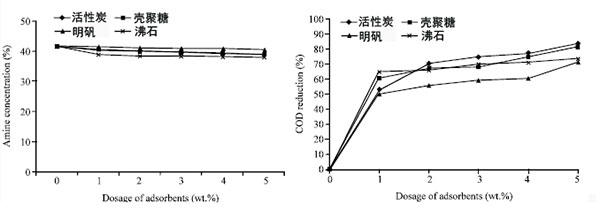 該單乙醇胺廢水含有許多類型的分子和離子。因此,某些分子和離子基于其特性被吸附到這些吸附劑表面上;钚蕴烤哂惺杷砻,有利于空氣中的有機(jī)物。同時(shí)沸石是親水性吸附劑。吸附劑的這些特性有助于降低COD水平。從結(jié)果可以看出,與活性炭和沸石相比,活性炭是降低COD水平的效果好的吸附劑。