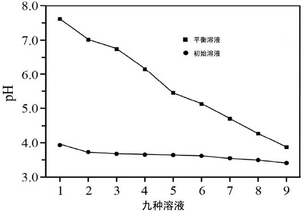圖2:初始溶液和平衡溶液的pH用于在40℃下進行的測試。