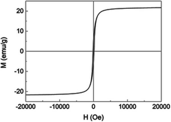 活性炭復(fù)合纖維材料在室溫下-20000至20000 Oe范圍內(nèi)的磁滯回線在圖3顯示,其形狀是典型的S曲線,對(duì)應(yīng)于超順磁行為。包括飽和磁化強(qiáng)度Ms,磁矯頑力HC和剩余磁化強(qiáng)度Mr的磁特性;钚蕴繌(fù)合材料的Ms低于塊狀Fe3 O4,這可以通過活性炭載入Fe3O4納米粒子來解釋,這與發(fā)現(xiàn)的結(jié)果非常一致。