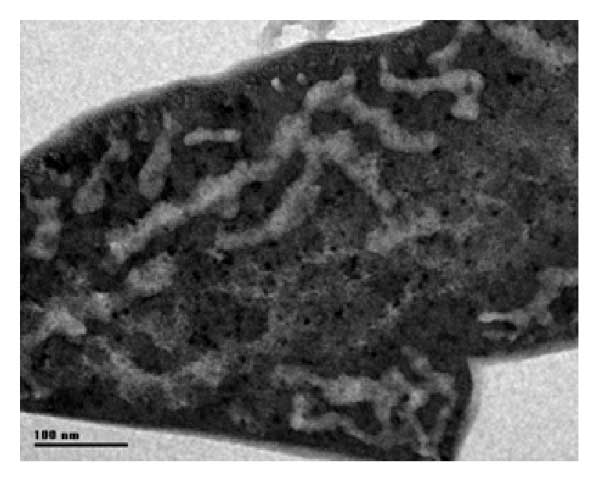 圖5:吸附有機(jī)物后活性炭的TEM圖像。