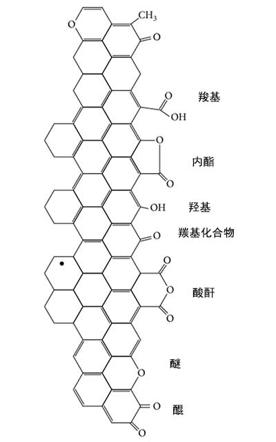 圖4:在活性炭上發(fā)現(xiàn)的主要表面基團的示意圖。