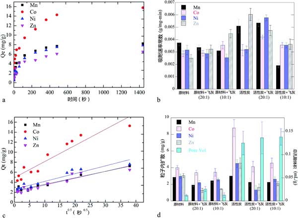 圖3:活性炭對重金屬的吸附動(dòng)力學(xué)。