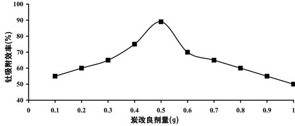 圖3:改良活性炭劑量對釷離子吸附效率的影響。