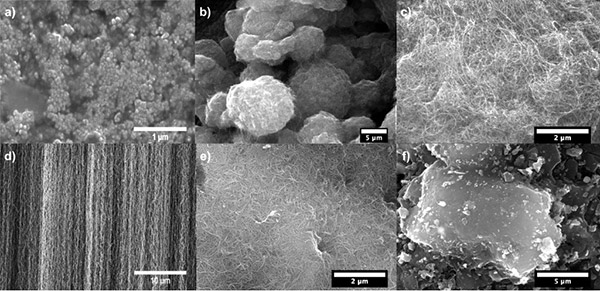 圖1:不同吸附劑的示意圖:a)活性炭,b)氧化石墨烯,c)碳納米角,d)碳納米管。