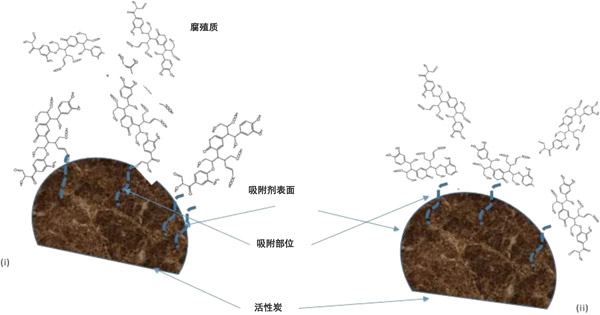 廢水中不同類型的腐殖質(zhì)會改變化學(xué)和物理特性,因此,它們與不同類型的吸附劑相反地相互作用。關(guān)于吸附劑的孔隙率,活性炭主要是微孔的,具有非常大的表面積。β-FeOOH的情況尚不清楚,因?yàn)椴煌姆椒ńo出的結(jié)果不同。但是,鐵化合物上有可能存在微孔。與活性炭相比,可用于AAFS和β-FeOOH的吸附面積小。但是,被吸附物的大小可能使其無法穿透微孔,因此限制了對活性炭的吸附,但是活性炭的孔隙率是可控的所以能解決這方面問題。