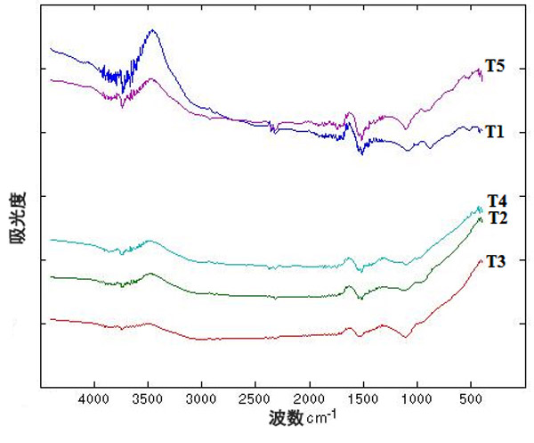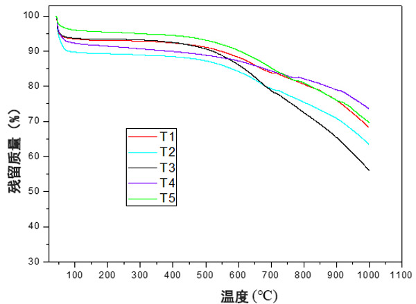 根據(jù)圖3,不同的處理導(dǎo)致熱分解曲線有所不同。此外,不同處理的殘留質(zhì)量也有所不同,處理T1,T4和T5呈現(xiàn)更高的殘留質(zhì)量,表明這些處理具有更高的耐熱性。處理T2和T3的殘留量較低,表明處理的耐熱性較低。此外,這些處理在后期殘留質(zhì)量之間存在重大差異而脫穎而出。根據(jù)處理(電擊時(shí)間),降解曲線的差異可能與表面上不同官能團(tuán)的存在有關(guān)。在熱過程中,由于存在的官能團(tuán),會(huì)形成不同的產(chǎn)物,從而導(dǎo)致更高或更低的質(zhì)量損失,因?yàn)榛钚蕴康臒岱纸夥磻?yīng)了其表面上官能團(tuán)的存在。然后,官能團(tuán)的類型和數(shù)量都會(huì)影響熱重曲線。但是,由于表面官能團(tuán)的降解與其結(jié)構(gòu)不同,因此官能團(tuán)的類型具有更大的影響,并且可以解釋處理之間的差異。